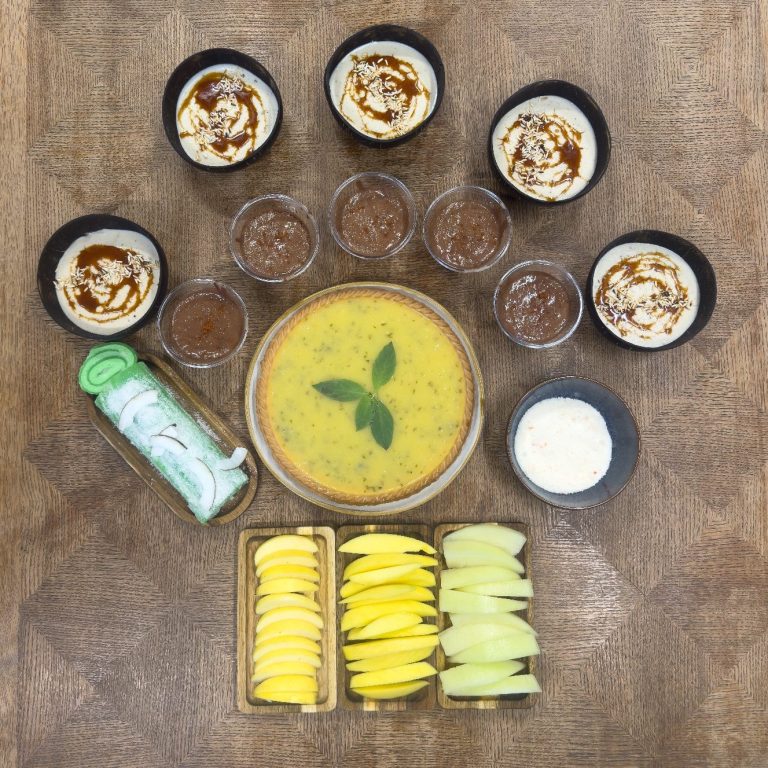 - Roulé de coco : Biscuit infusé à la feuille pandan avec une crème coco