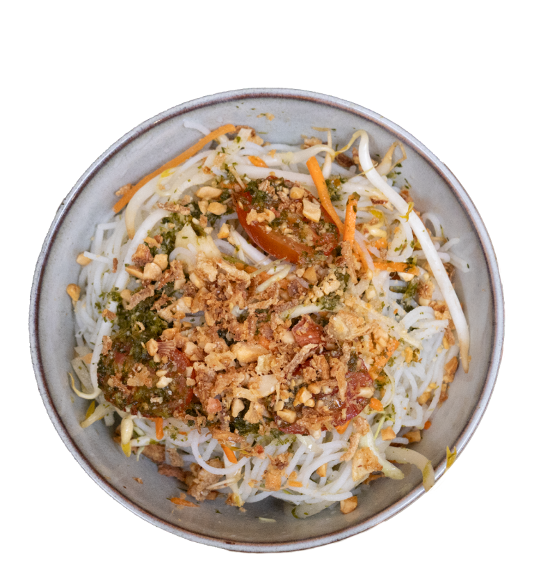 Salade de vermicelles et légumes croquants assaisonnés d’une vinaigrette de citron vert et d’herbes thaïlandaises