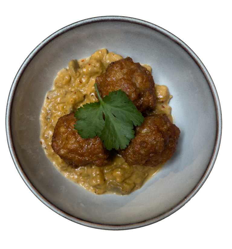 Boulettes de poulet & son caviar d'aubergine